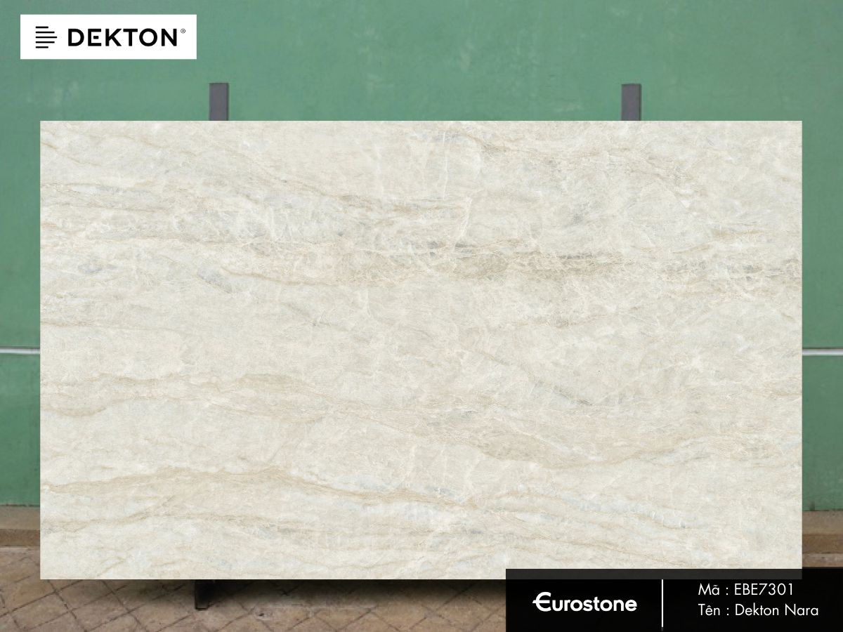 - Mô tả chung: Dekton Nara lấy cảm hứng từ vẻ đẹp thanh bình của thiên nhiên, kết hợp tông màu be dịu nhẹ cùng những đường vân mềm mại, tinh tế trên nền sáng thanh lịch. Thiết kế mang hơi thở hiện đại nhưng vẫn gợi nhắc vẻ đẹp cổ điển của đá thạch anh Taj Mahal – sang trọng, ấm áp và đầy chiều sâu.