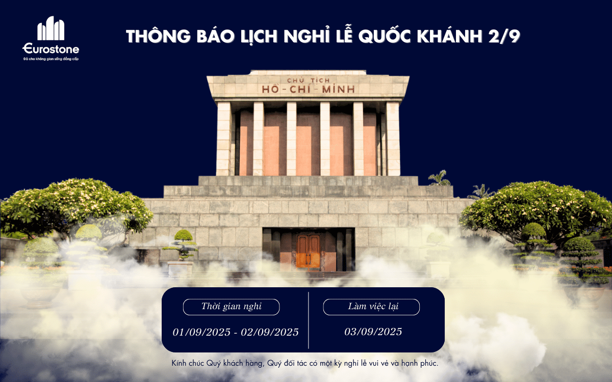 Nhân dịp kỷ niệm 80 năm Quốc khánh nước Cộng hòa Xã hội Chủ nghĩa Việt Nam (2/9/1945 – 2/9/2025), Eurostone trân trọng thông báo lịch nghỉ lễ như sau: